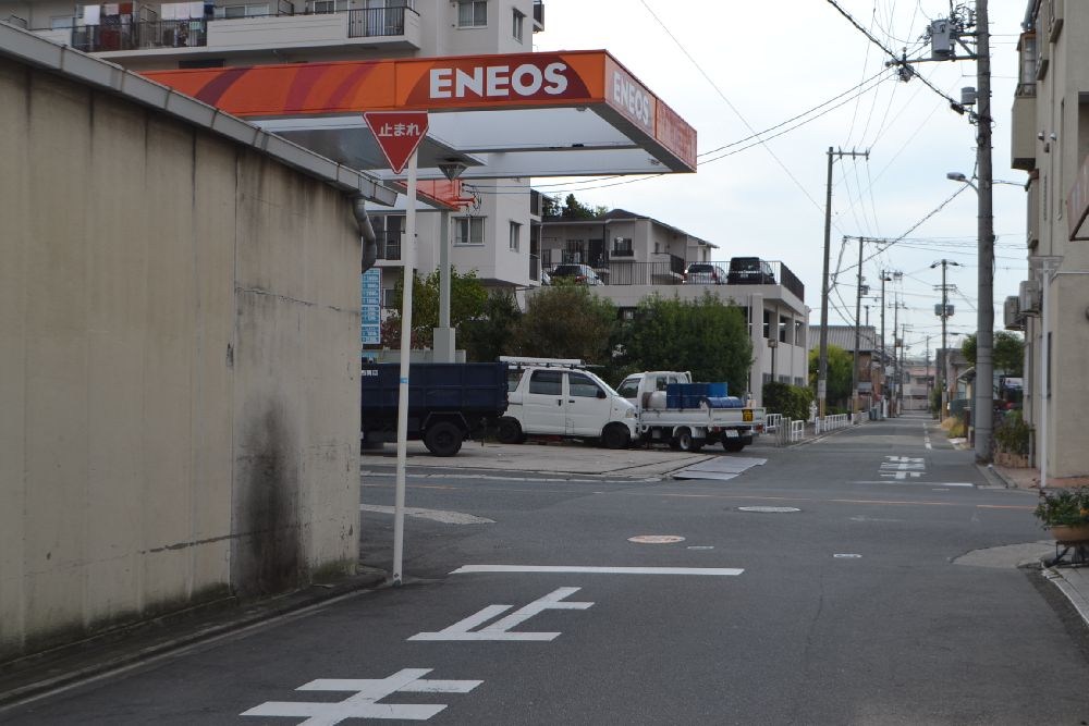 エネオスのガソリンスタンド、止まれを左折します。